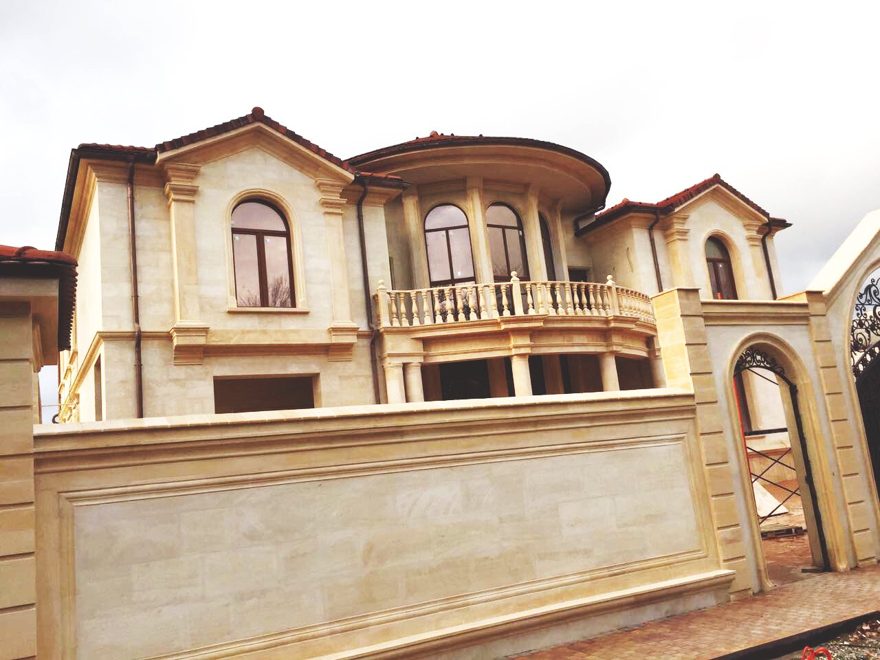 Специалисты говорят, что нет ни одного дома из дагестанского камня, который был бы похож на другой. Материал позволяет воплотить в реальность любую мечту. Это могут быть аккуратные одноэтажные коттеджи, двухэтажные просторные здания, очень большие разноуровневые дома с балконами, башенками, навесами. Часто такие проекты имеют множество дополнительных деталей. Это красивые двери, окна, ворота.