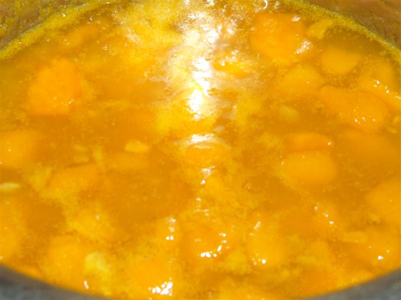 - Смесь варить на медленном огне пока мякоть дыни не станет прозрачной, а варенье не загустеет.